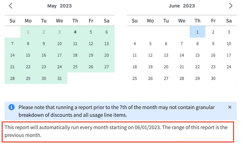 | Usage Account | Only appears when the Account grouping was selected when defining the report. This is the AWS AccountID, obtained from your cost and usage report |
